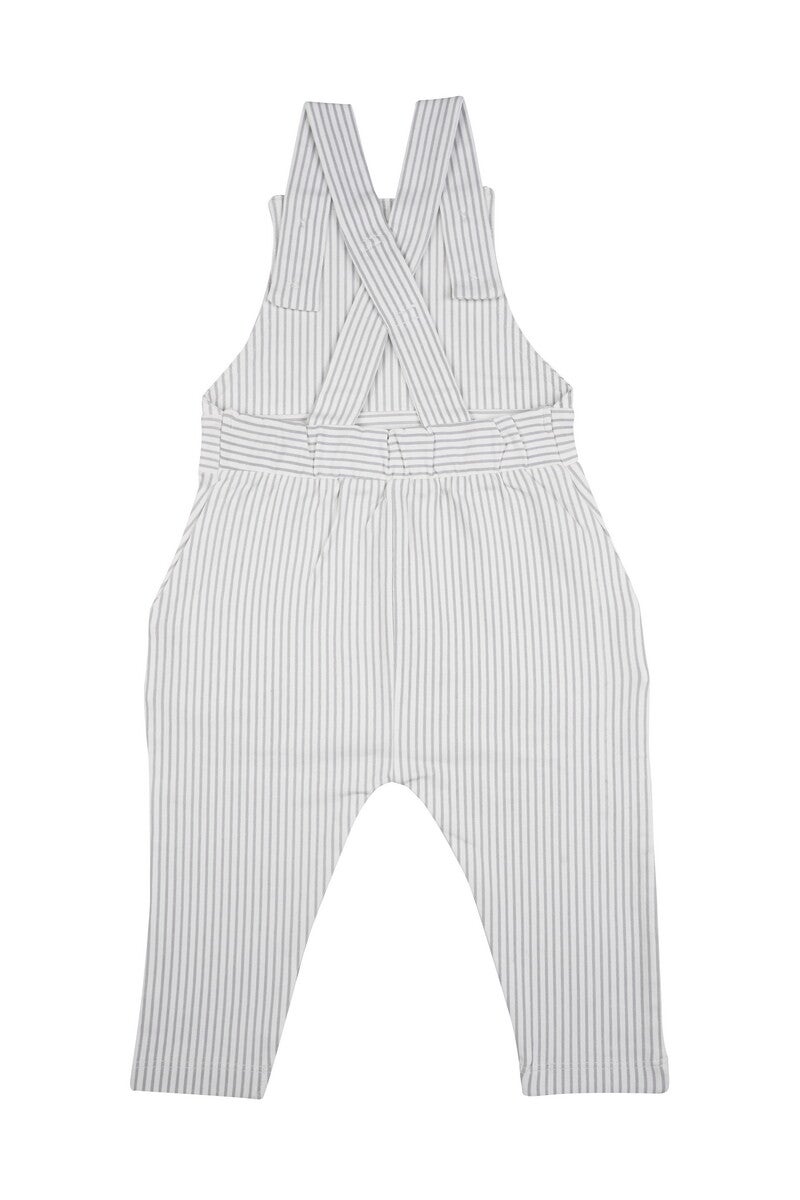 Tuinbroekje gestreept kleur wit met grijze streepjes