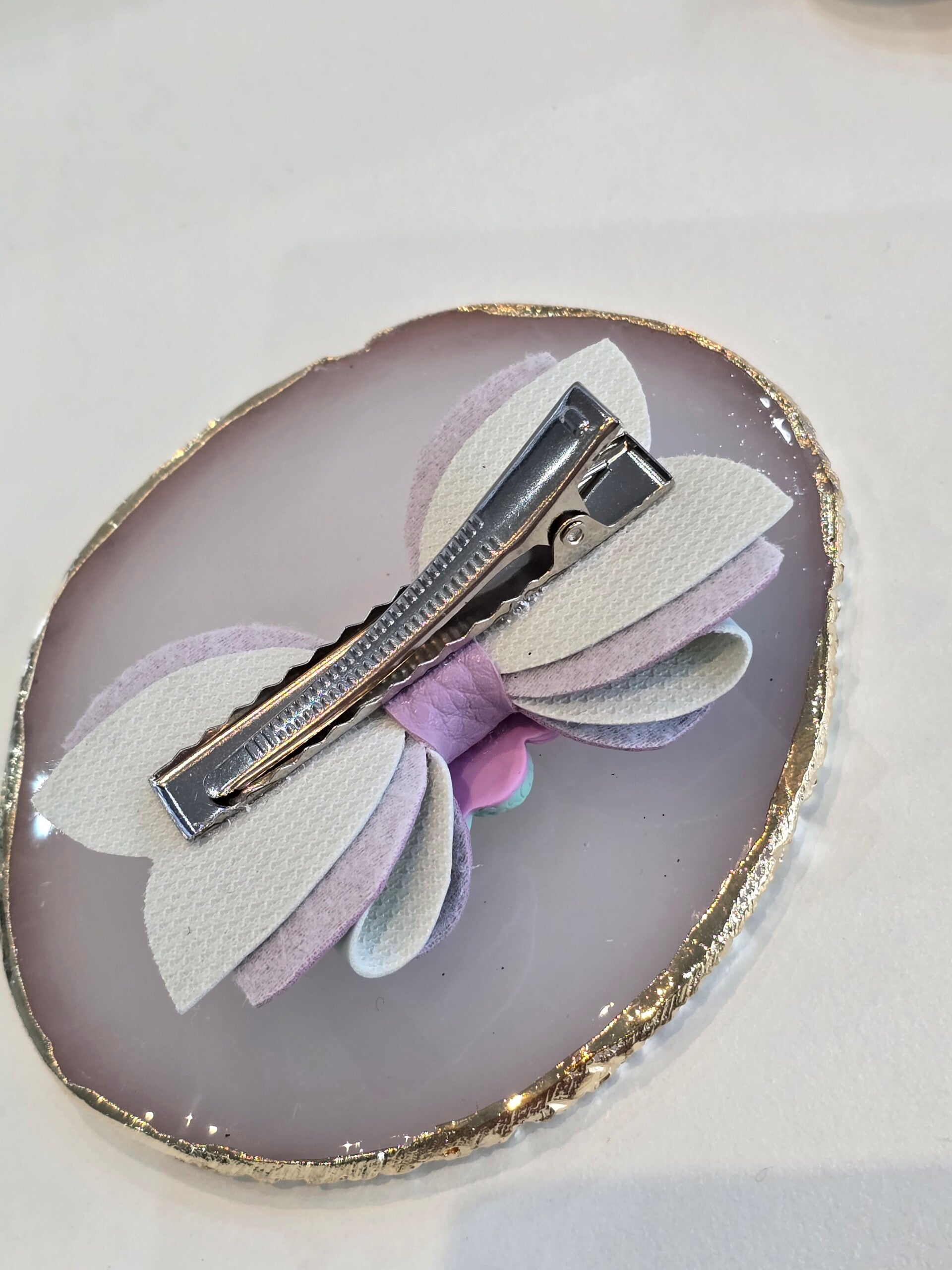 De speldjes zijn gemaakt op een alicator clipje zo dat ze goed blijven zitten in het haar