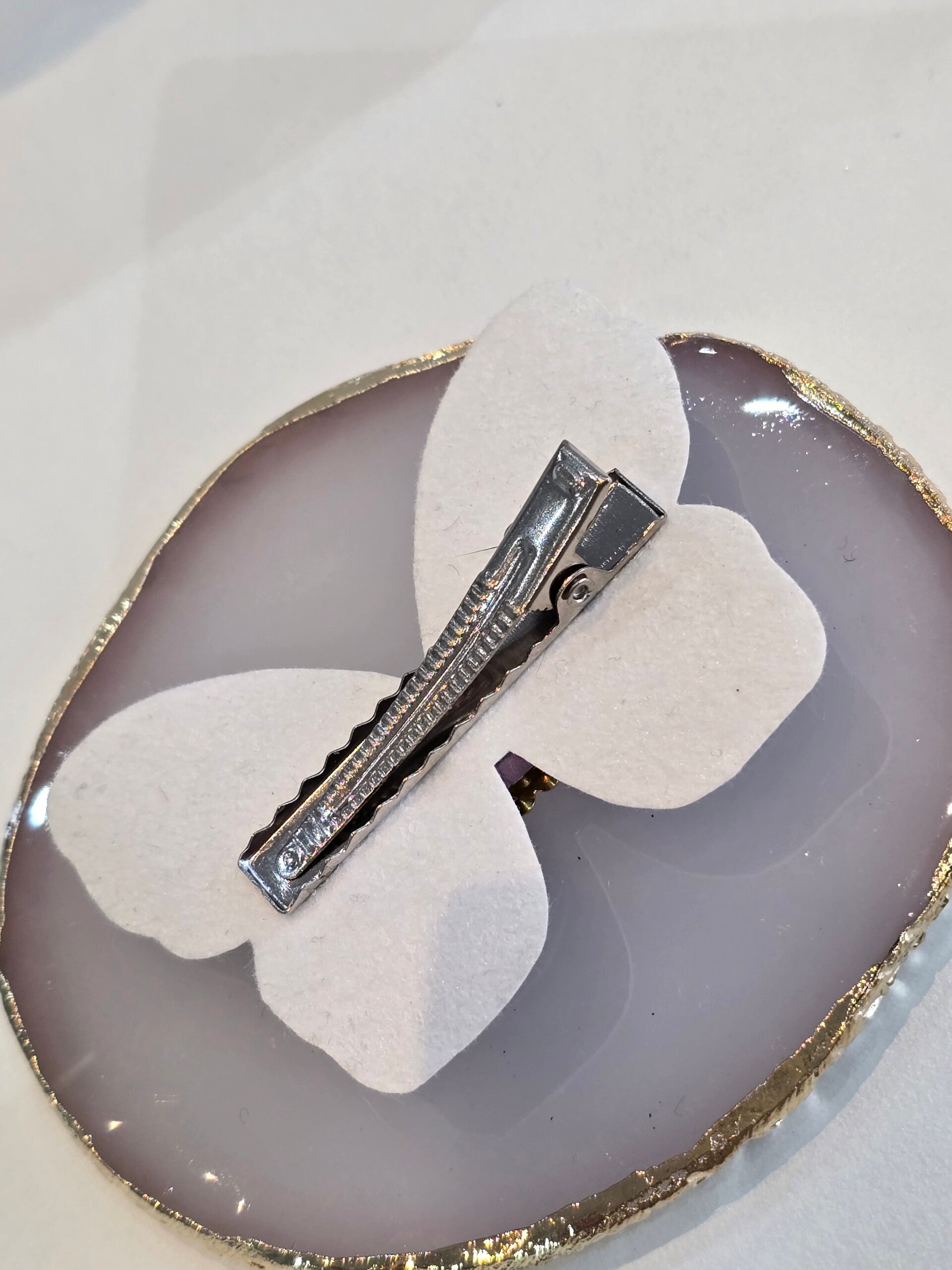De speldjes zijn gemaakt op een alicator clipje zo dat ze goed blijven zitten in het haar
